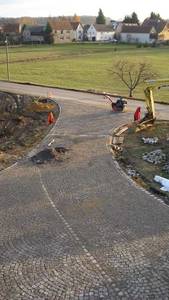 Erneuerung und Sanierung Medienleitungen und Straßenbau, ca. 200 m2 Natursteinpflaster, ca. 200 m2 Betonsteinpflaster, ca. 800 m2 Asphaltbefestigung |