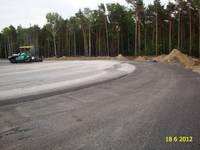 Baubereich liegt zum großen Teil in einem umgewandelten Waldstück, dessen Wurzeln zu roden waren. vollständiger Abbruch eines massiven Lagergebäudes, Herstellung Straßenentwässerung, Zaunbau, Pflasterarbeiten. Asphalteinbau, Baulänge der Straße ca. 200m und Breite ca. 4m, Randabdichtung, Bankett herstellen, Rundbord setzen |